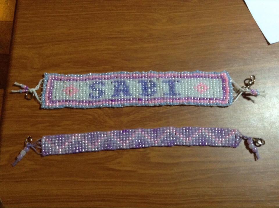 I also do bracelets using beads – It’s bead loom weaving.  This takes long to make because the beads are very fine and I make different designs by changing the colors of the beads.