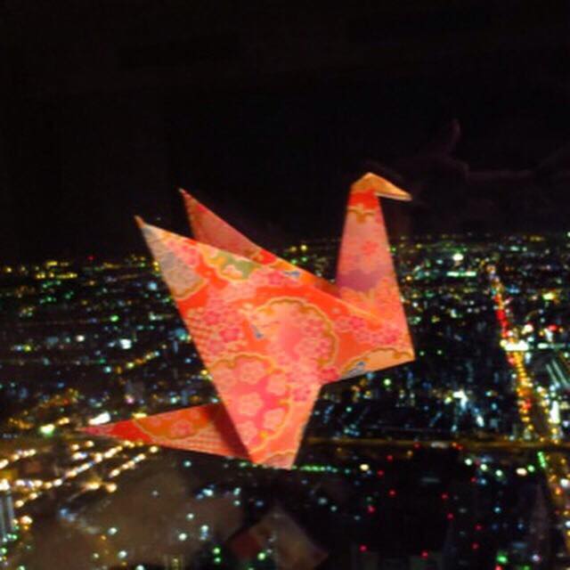 We used old recycled magazines and made a special origami piece and stacked them on to each other.