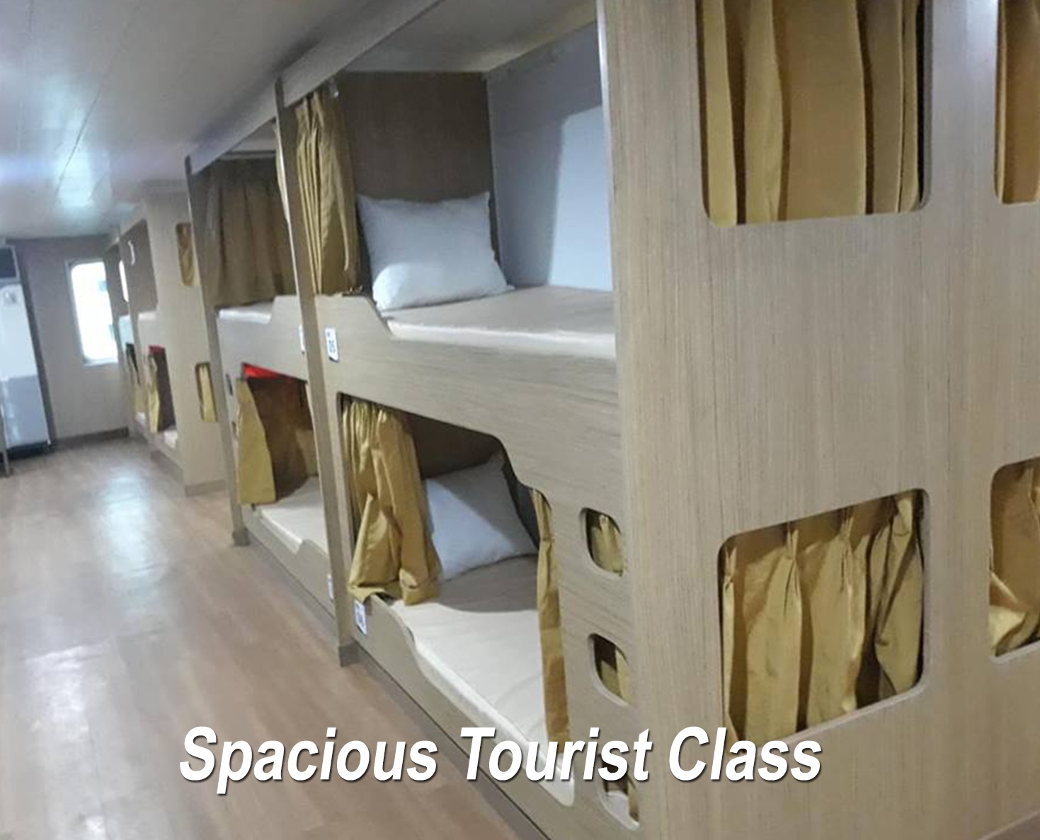 M/V LITE FERRY 19 boasts of interior-designed accommodations with hotel-like features and amenities including a fully air-conditioned 40-seater restaurant, a fully stocked canteen that will be open overnight, an information desk, and multi-purpose kiosk. It has two economy passenger decks including tourist class, business class, and four executive cabin rooms that can accommodate a total of 856 passengers. Its deck pathways have bigger spaces than MARINA standards and its facilities are compliant with international maritime standards.