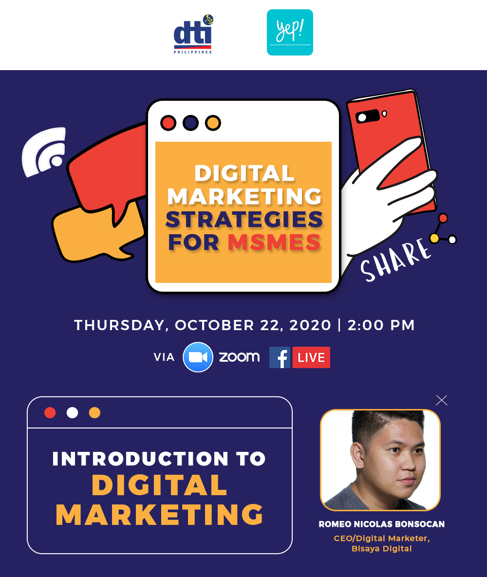 The first webinar under this series, “Introduction to Digital Marketing,” was held last October 22 and the second one, “Knowing and Reaching Out to Your Customers Online,” was held last October 29. The two sessions can be rewatched at these links: and